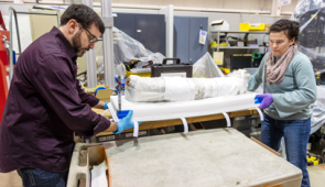 In fall of 2017, Northwestern undergraduate student researchers, under the guidance of instructors Marc Walton and Taco Terpstra, scientifically analyze a Roman-Egyptian period portrait mummy to collect data that will aid in the historical inquiry and contextualize its meaning in preparation for its exhibition at the Block Museum of Art, beginning in January. Images courtesy Block Museum of Art.