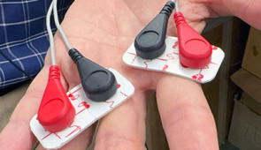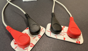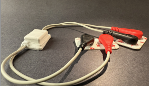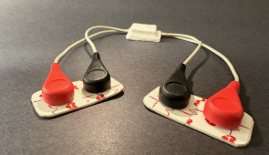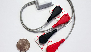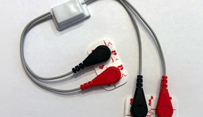 The resulting device is a thin, soft, pliable cord that lightly wraps around the outer circumference of the breast. Electrodes, which gently adhere to the skin, are integrated into each end of the cord. A small, lightweight “base station,” which also softly mounts onto the skin, sits in the middle of the cord between the electrodes. Enclosed in a soft, silicone case, the base station holds a small rechargeable battery, Bluetooth technology for wireless data transfer and a memory chip.